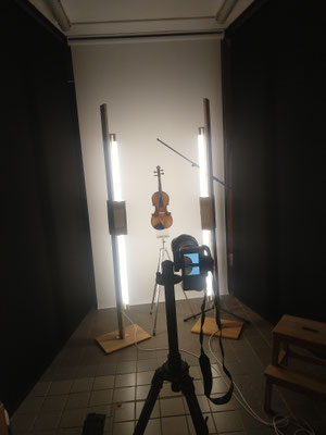 Wir haben uns ein kleines Photostudio im Keller eingerichtet, um gute Instrumentenphotos machen zu können.